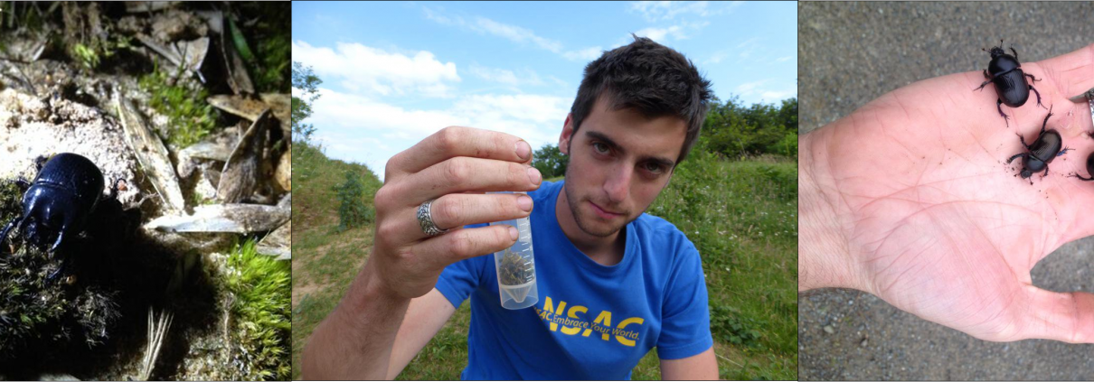Some of my favourite memories from my time abroad were natural history outings. Richard Comont, a DPhil student in our research group took me out in the winter of 2014 to see the impressive minotaur dung beetle. We arrived at a local park in the pitch black of night, armed with a couple flashlights. Richard, who bears a certain resemblance to Hagrid (the brawny groundskeeper for Hogwarts School of Witchcraft & Wizardry), also carried a pooter, umbrella, and beating stick. We found the minotaur beetles, they were certainly impressive, but perhaps more memorable was a vivid image of a grinning Richard whaling on a bit of gorse with a broom stick, in the pitch black of the woods.