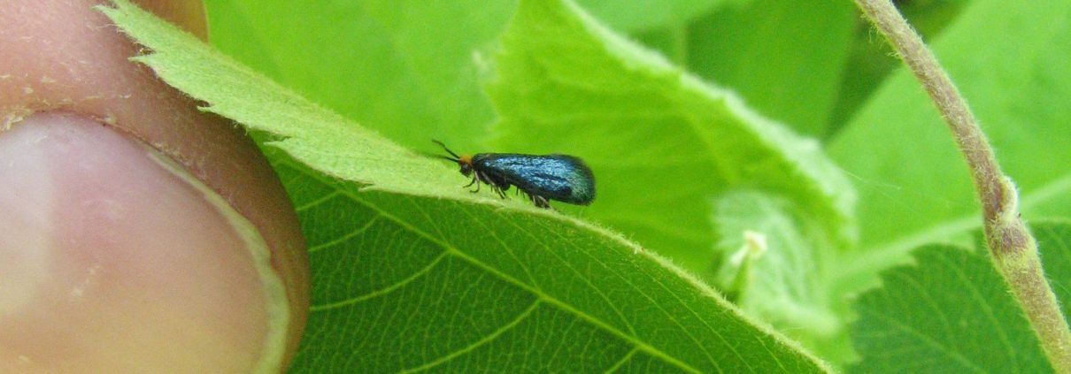 It was an early morning after a long drive from Guelph to a small fruit farm in Chatham-Kent where my undergraduate student, Caitlyn, and I were conducting a small-plot spray trial to test the effect s of repellents against Drosophila suzukii (Spotted Wing Drosophila), a recent invasive and serious fruit pest. I knew the raspberry patch was heavily infested with D. suzukii so before getting to work, to amuse ourselves at the start of the day, I started gently shaking canes, and we watched the swarms of fruit flies disperse and hover over the fresh fruit. However, as I went to grab a branch low to the ground, I noticed something different about one of the fruit flies sitting on a leaf. It had characteristic white “racing stripes” along its thorax, unlike any other fruit fly I had seen. This was it! This was very likely Zaprionus indianus or African fig fly, another invasive and potential fruit pest that we knew was moving northwards from the southeastern USA. Caitlyn grabbed a vial and we successfully had, on 10 September 2013, what we thought was the first capture of this fly in Ontario and Canada.